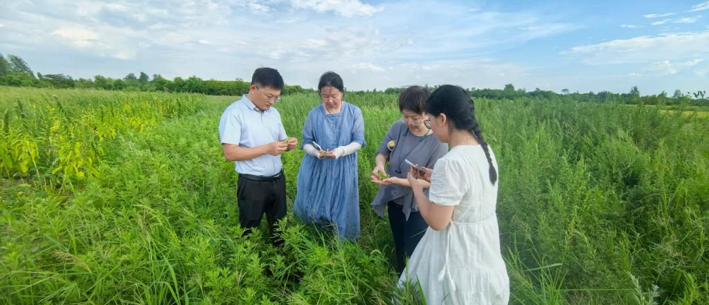 当日下午,陈培育、孙慕芳等一行人到豫东南绿艾小镇食用艾草种植基地实地考察,针对潢川县食用艾的实际生长情况,陈培育提出,该物种具有喜光怕涝的特性,需重点关注田间排水管理,避免涝害影响植株生长及有效成分积累;孙慕芳提出,可尝试将矮型食用艾与茶园进行套种,同时建议尽快组织开展食用艾食用历史与消费需求的系统性研究,为后续食用艾产品的开发提供科学依据,助力区域特色农业高质量发展。(撰稿/李美勤)