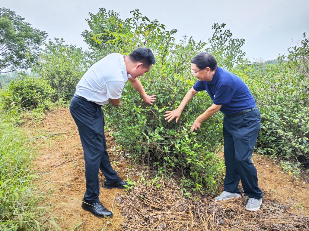 在白雀园镇新光桥村,服务团调研了多年失管的村集体茶园,并向村民建议近期及时清理园中杂木、杂草,深耕施基肥,明年春茶后重修剪,即可刺激茶树更新复壮,恢复茶园生机。