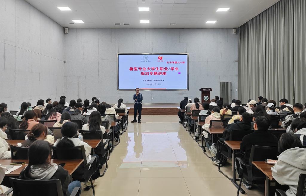 11月13日晚,学院邀请中国畜牧兽医学会小动物医学分会副秘书长、广东省畜牧兽医学会小动物医学分会会长、华南农业大学博士生导师石达友教授在大学生大创空间多功能厅举办兽医专业大学生职业规划专题讲座。石达友从“恋爱、订婚、结婚”婚恋视角谈“兽医专业大学生如何做好职业生涯规划”,引导学生积极备考执业兽医资格证考试,并分享了执业兽医考试的技巧。同时鼓励同学们,充分利用寒暑假到基层、到企业去锻炼,提高专业技能,希望同学们脚踏实地,勤恳学习,不断完善提高自己,充分实现自身价值。