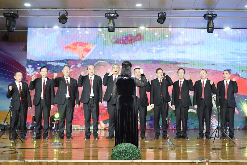 演出节目有大合唱、男女声小合唱、男女声独唱、舞蹈、模特表演、电吹管和奏、诗朗诵、太极扇等,内容精彩纷呈,场面欢快热烈,充分展现了我校离退休职工老有所乐、健康向上的精神风貌。现场用“读懂中国”视频讲述了范宏伟、周本翔两位退休教授牢记立德树人初心使命、科技服务乡村振兴的感人事迹。大学生艺术团也通过歌曲、舞蹈表达了青年学生的尊老敬老之情。