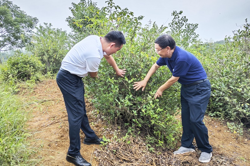 在白雀园镇新光桥村,服务团调研了多年失管的村集体茶园,并向村民建议近期及时清理园中杂木、杂草,深耕施基肥,明年春茶后重修剪,即可刺激茶树更新复壮,恢复茶园生机。