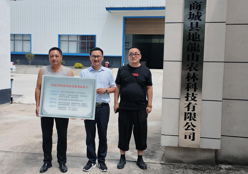 8月29日,我校河南省科技特派员何勇、陈义、殷明、郑伟一行4人到服务企业商城县地龙山农林科技有限公司,深入调研企业生产经营现状,了解企业服务需求,为企业茶叶、油茶等农产品种植、加工、营销及优化电商平台提供技术指导。