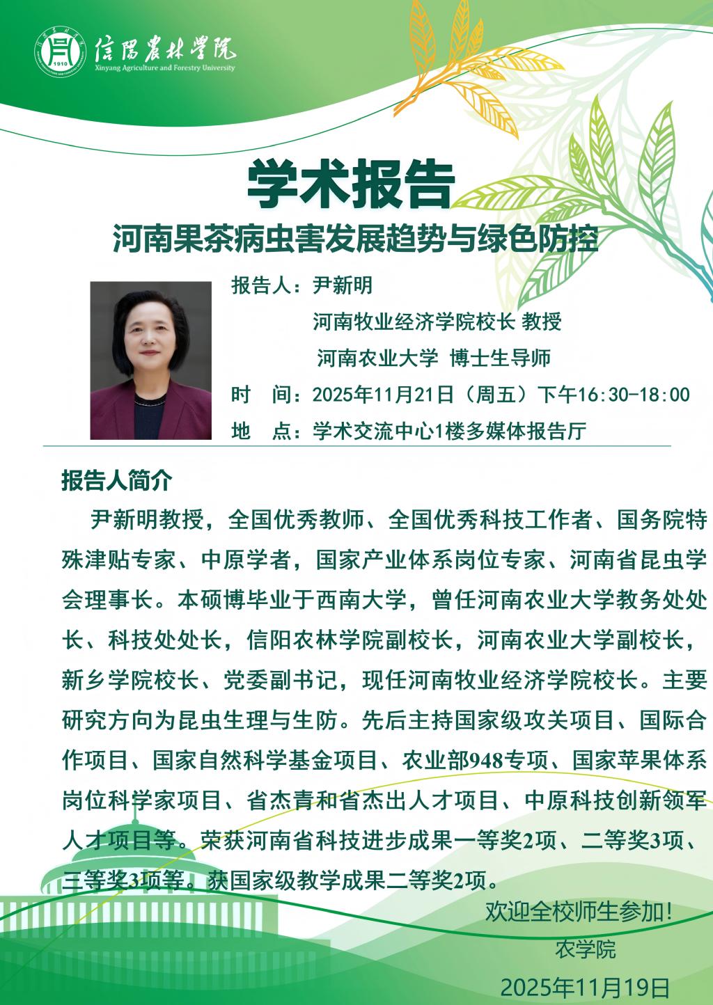 学术报告-河南果茶病虫害发展趋势与绿色防控