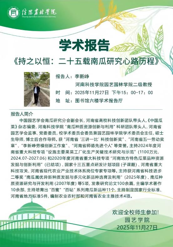 学术报告——持之以恒:二十五载南瓜研究心路历程