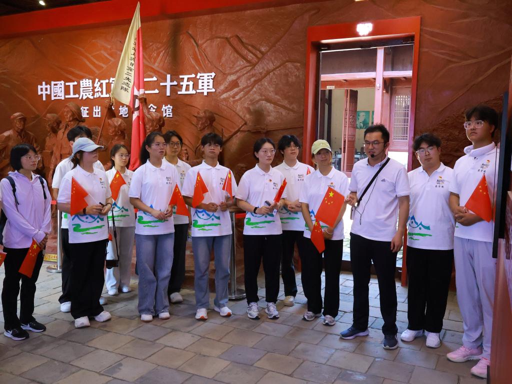 伴着一路红歌,师生党员走进红二十五军军部旧址何氏祠,斑驳的墙壁上,泛黄的史料陈列诉说着革命岁月的峥嵘,大家肃立聆听讲解员讲述红军英勇杀敌的故事,深入了解红二十五军在此整编出发、挺进陕北的光辉历程。透过一件件文物、一张张照片,革命先辈们在艰苦环境中坚定信念、浴血奋战的场景仿佛重现眼前,党员们深刻感受到长征精神的伟大力量,进一步坚定了传承红色基因的使命感。在何家冲政治文化广场,全体党员重温入党誓词,刚劲有力的声音响彻整个广场。