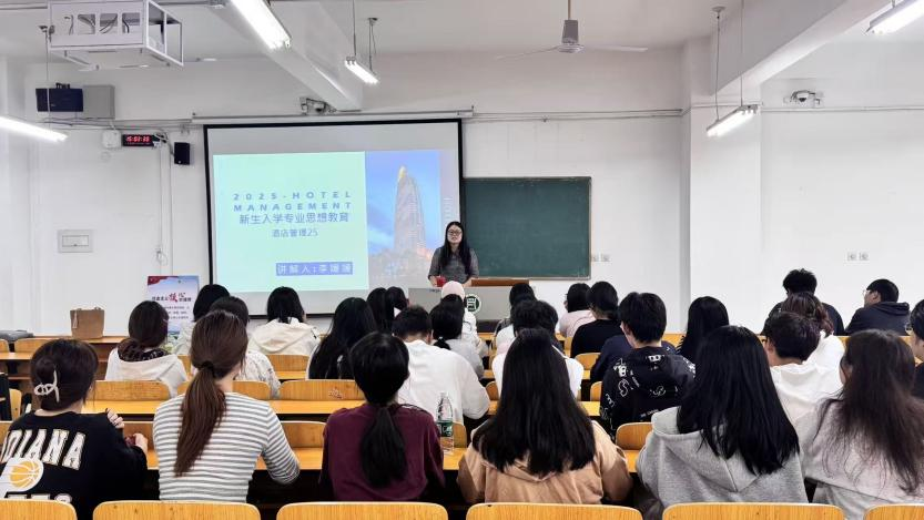 为了帮助2025级酒店管理、酒店管理与数字化运营专业新生深化专业认知,明晰人才培养模式、课程设置、毕业要求及行业发展趋势,旅游学院于9月28日组织开展四场新生专业思想教育系列讲座。本次讲座由酒店管理教研室主任、副主任分别主讲,围绕专业方向、学历层次与职业发展路径开展系统讲解与学业引导,并与同学们进行了精彩互动。