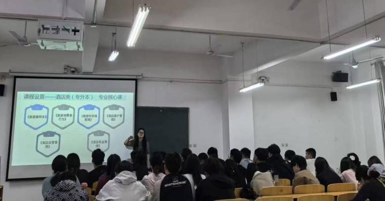余锳若面向酒店管理与数字化运营专业新生开展专题讲座,主要聚焦课程体系与职业规划。在课程体系方面,详解前厅服务与数字化运营、酒店数字化营销等核心课程模块,说明课程设置紧扣行业数字化转型趋势,融入“1+X”证书标准,实现“课证融通”;在实践教学方面,介绍学院与知名酒店共建的实习基地,及3D模拟实训室、酒店信息系统实训平台等资源,明确实践教学以真实场景锻炼学生数字运营与服务管理能力为目标;在职业规划方面,提出“大一定方向、大二练技能、大三强实战”的“三步走”建议,同步介绍河南省内专升本对接院校及专业,为学生学历提升提供路径指引。