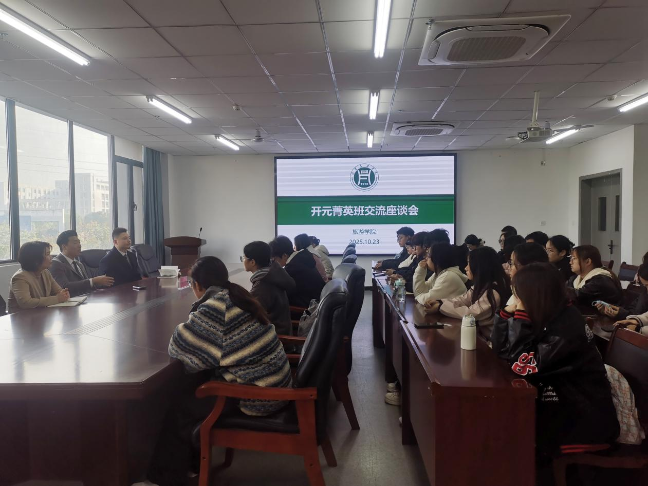 首先,陈婷回顾了三年来开元菁英班的人才培养情况,介绍了校企合作协同育人成果,对开元森泊度假乐园为我院学子提供的学习资源和实践平台表示感谢。座谈会上,2022级开元菁英班学员汇报了三年来的学习成长情况,并针对就业规划与张洋展开了讨论,张洋从行业人才培养与学生自身发展出发,为学生介绍开元森泊度假乐园的人才发展通道,以及学生应当如何结合自身情况明确职业选择与未来发展方向,对学生提出的问题进行了一一解答。会上还询问了2024级开元菁英班学员对课程教学的意见和建议。