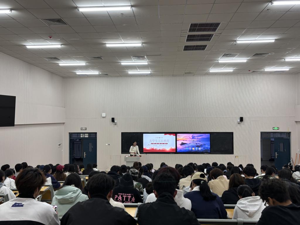 张春焕老师通过案例分享、实践体验感悟等多种形式,全方位讲解学院“五自”教育理念:自尊、自爱、自强、自立、自信。一是尊重自我,维护人格尊严,认识到自我价值,尊重自己的人格和权利,同时也尊重他人。在人际交往中,不卑不亢,敢于拒绝不合理的要求;爱护自己的名誉,注重言行举止,不参与有损人格的活动;能够正确看待批评和建议,有则改之,无则加勉。二是关爱自我,珍惜身心健康。在大学生中要养成良好的生活习惯,规律作息,健康饮食,坚持锻炼;关注情绪变化,学会压力管理,必要时积极寻求心理帮助;在恋爱关系中,懂得保护自己,树立正确的性观念,避免身心受到伤害。三是奋发向上,提升自我能力。要有积极的人生态度和远大的理想,不甘平庸,努力进取,不断学习新知识、新技能,锤炼意志品质。四是独立自主,不依赖他人。包括经济上的独立倾向和生活上的自理能力,更重要的是思想上的独立,能够独立思考、判断和选择。五是肯定自我,勇于展现风采。基于对自身能力的正确认知,相信自己有价值、有潜力,敢于表达观点、迎接挑战、展示才华。