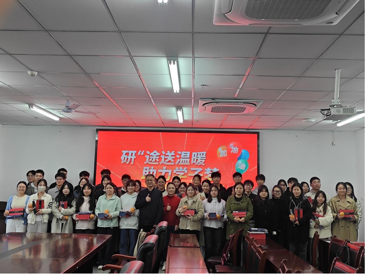为缓解备考压力,鼓舞学子士气,11月3日,旅游学院在双创310教室为2026届考研学子精心策划并举办了“‘研’途送温暖 助力学子梦”暖心活动,为冲刺阶段的考研学子注入强大精神动力,送去冬日融融暖意。