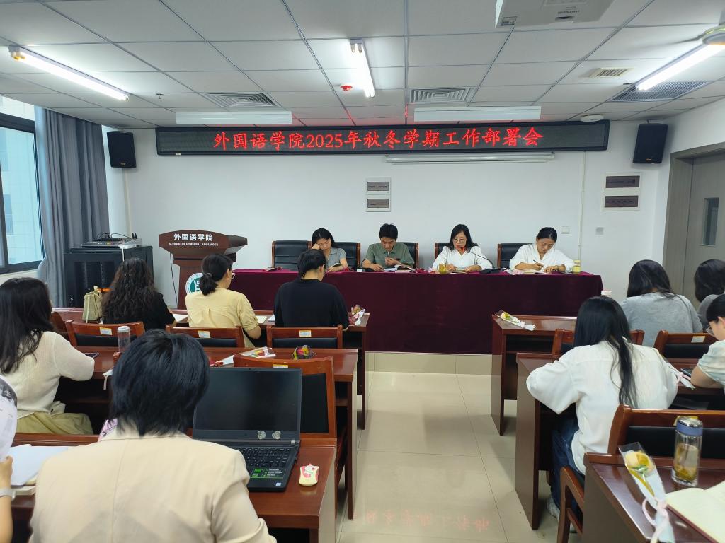 9月9日下午,外国语学院在3B实验楼205会议室召开2025年秋冬学期工作部署会,会议由院长芦晓莉主持,全体教职工参会。会议伊始,芦晓莉对全体教职工在上学期教学、科研和就业等工作中取得的成绩进行了肯定,随后,...