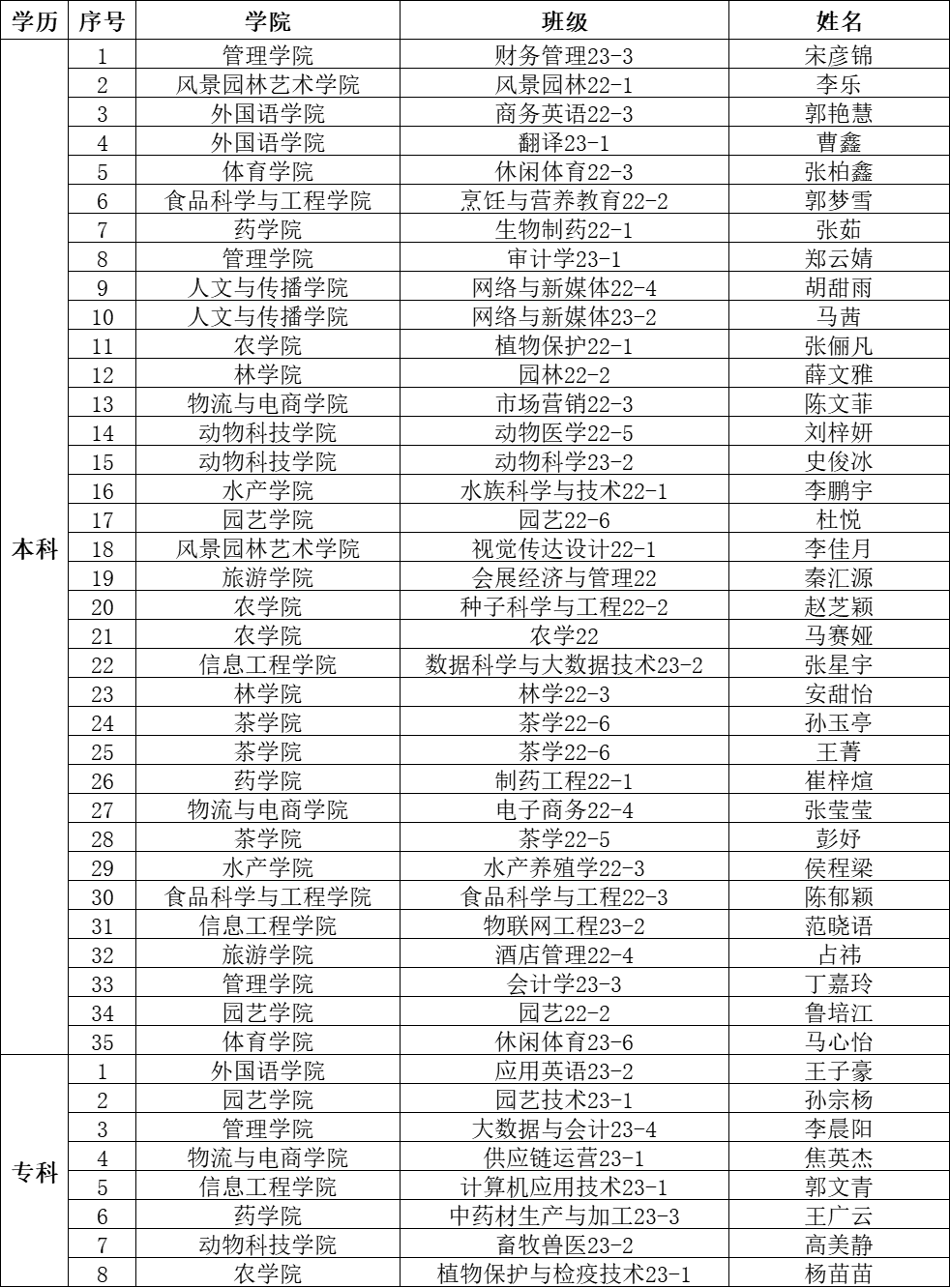 根据《教育部 财政部关于印发<本专科生国家奖学金评审办法>的通知》(教财函【2019】105号)和《国产成人精品一区二区三区国家奖学金管理办法》程序要求,国产成人精品一区二区三区国家奖学金评审委员会于2025年9月25日下午召开评审会议,按照河南省学生资助中心下达的评选人数,从各学院推荐参评的59名候选人中,评选出35名本科、8名专科学生拟获2024-2025学年度国家奖学金,现予以公示(详见附表)。